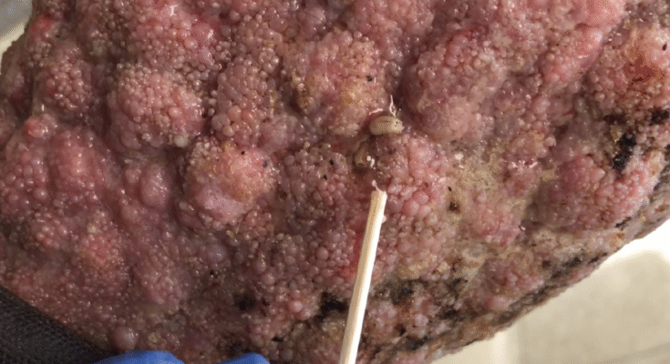 It may look unbelievable, but what you see in the picture is a real medical condition known as Myiasis — an infestation of fly larvae (maggots) inside human or animal tissue. These larvae feed on dead or living tissue, leading to painful, swollen wounds like the one shown above.