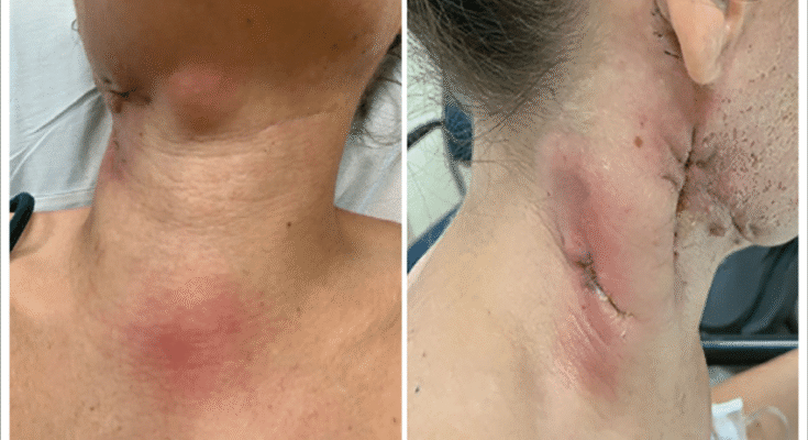 When you look at the image above, it’s hard to ignore the large, red, and swollen bump on the person’s neck. It appears painful, angry, and full of pus. This condition is known as a neck abscess, and it’s more common than most people think. In this article, we will break down what it is, why it happens, and how it’s treated – all in simple, easy-to-understand language.